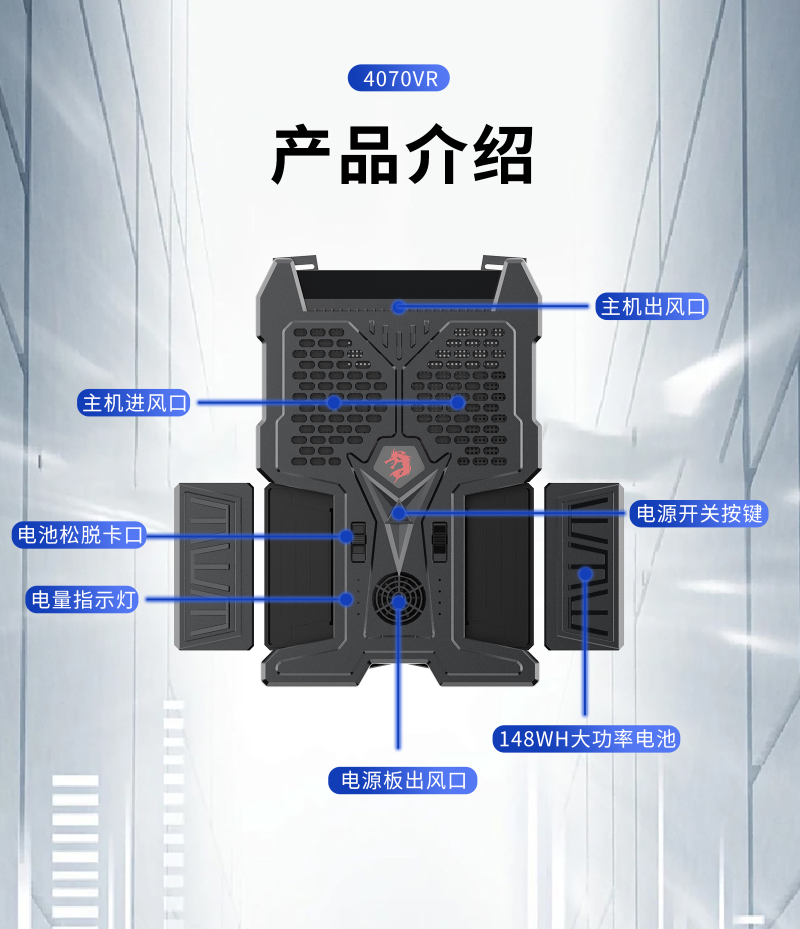 YDTDVR-Hero 4070背包電腦便攜移動主機VR主機大空間走動體感游戲主機